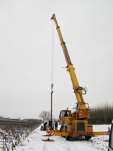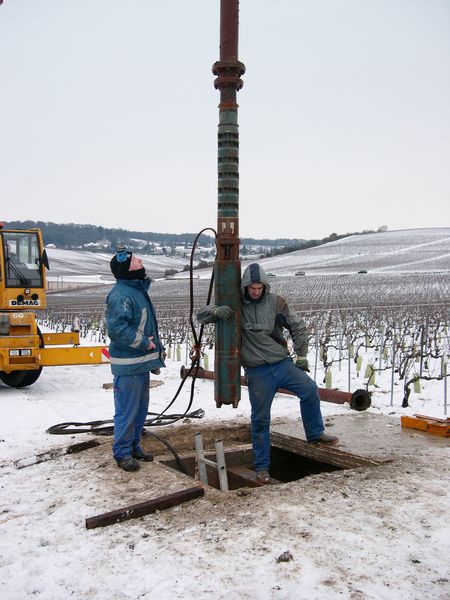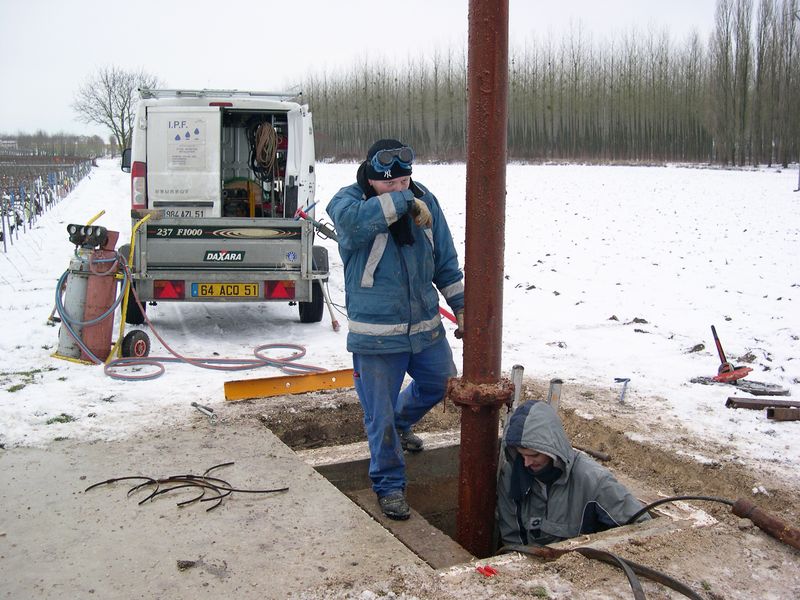 Pompe de forage destinée à l'aspersion des vignes pendant les gelées printanières pour diminuer le risque de gèle des bourgeons nouvellement sortis.